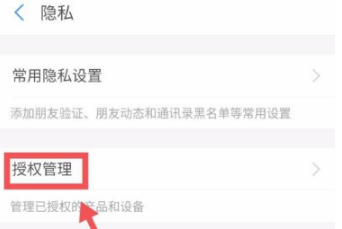 2、点击“隐私”-点击“授权管理”