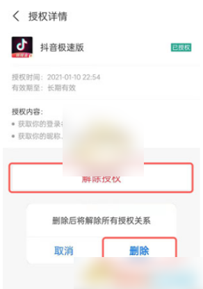 3、找到并点击“抖音极速版”-点击“解除授权”即可。