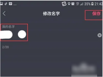 4、输入需修改的名字,点击右上角“保存”。