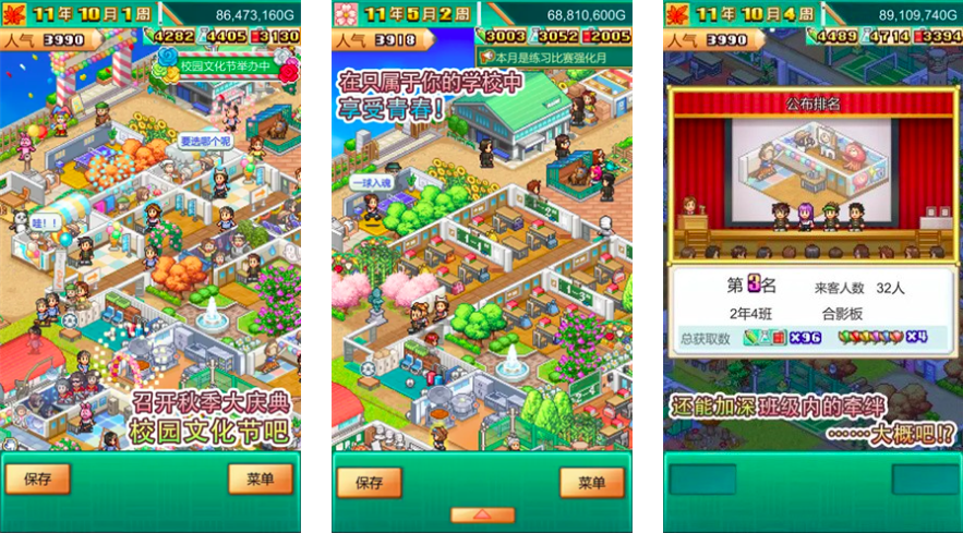 校园题材同样是开罗系列的重要分支,《口袋学院物语3》允许玩家全面参与学校的规划与管理。从种植樱花树、松树等绿植,到配置保健室、更衣室、教室等350多种设施,细节满满。超过100个校园任务与随机触发事件交织,带来沉浸式的教育经营体验,重现青春校园记忆。