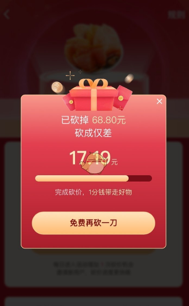 3、*会砍掉一定的价格,然后可以通过分享好友助力砍价的方法来免费获得商品。