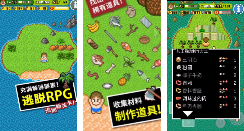 无人岛大冒险是一个比较考验玩家生存能力的游戏,在里面会设定一个像素风格的岛屿,每个玩家都可以在这里开启一场荒岛求生,岛上没有现成的食物和物品可以使用,玩家需要在游戏里,自行进行物品的收集,有了足够的材料之后,玩家就能生存下去,还可以建造船只离开这个荒岛,游戏里的像素风格,能让玩家有一种怀旧体验。