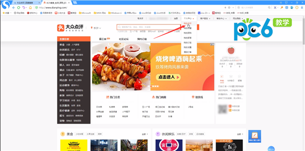 2.点击登录,登录成功后,点击“个人中心”,在弹出来的下拉窗口中,点击“我的点评”
