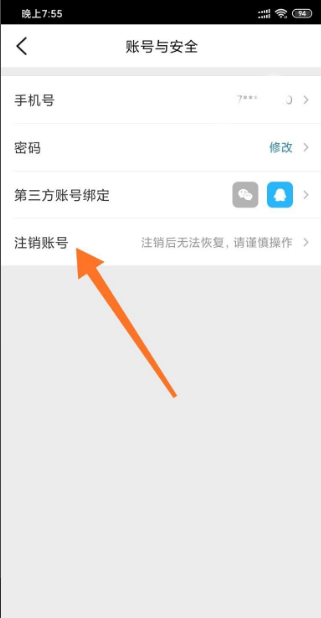 点击最后一个选项“注销账号”;