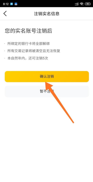 点击“确认注销”按钮;
