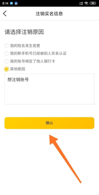 选择原因,点击确认;
