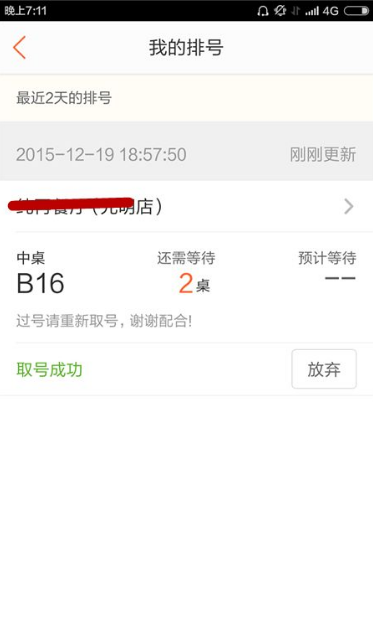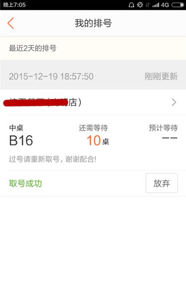 观察排号情况。看看选择的商家目前有多少人排号,排队人不多,就选择排队吧。