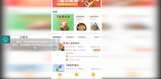 2.滑动,选择商铺并点击;滑动,点击想要订购的商品后面的加号。