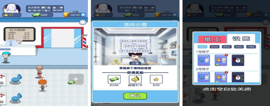 简约的画面,以及特别简单的操作方式,让大家化身成为优秀的托尼老师,经营自己的美发店。因为自己的手艺比较好,因此吸引了更多的顾客来光顾,首先可自定义具体的价格表,比如洗发或染发的价格等等,可在任务选项中触发并接受各种任务的挑战,只要顺利完成之后就可获得丰厚金币,扩大自己的理发店。