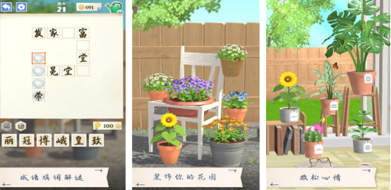 想让孩子学到更多的成语知识,那么此游戏就是不错的选择,其中的主要角色放弃了大城市的繁琐生活,回到了自己的农村老家,帮助奶奶去种植各种花朵。通过闯关的方式就能让这些花朵百花争艳,每个关卡中都会呈现出不同的成语,有的成语可能缺失1~2个字眼,而大家必须要将正确的汉字填入进去,即可完成挑战。