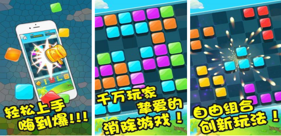 和曾经经典的俄罗斯方块特别相似,只不过这里的颜色色彩缤纷而已,在开局之后将会看到从屏幕上方不断涌落出不同形状的方块组合,大家可通过旋转或者合理放置的方式填满整行,只要将整行或整列全部消除之后,即可快速获得更高分数。