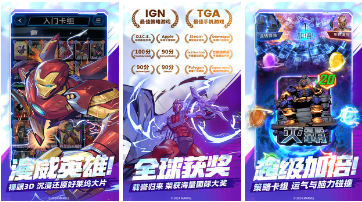 这是一款基于漫威宇宙的策略卡牌手游,凭借简洁易懂又富有深度的玩法获得多项国际奖项认可。采用裸眼3D技术呈现超级英雄战斗场面,剧情章节高度还原经典电影桥段。每局对战时间较短,但需要合理搭配卡组策略应战,适合碎片化时间游玩,让玩家轻松化身复仇者参与史诗对决。