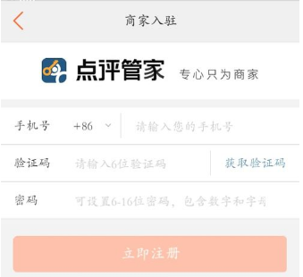 点击“非餐饮商家入驻”,那么再点击“我有实体店,立即入驻”。最后输入手机号,获取验证码,设置密码。完成一系列之后注册账号就完成了,因为我不是商家所以我就只能进行到这一步。注册账号之后就要下载点评管家app,认领门店,上传身份等信息就入驻完成。