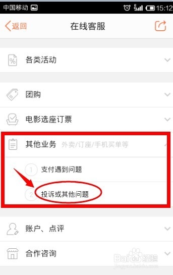 点击上步骤中的下拉按钮后,你可以看到”投诉或其他问题“,点击它