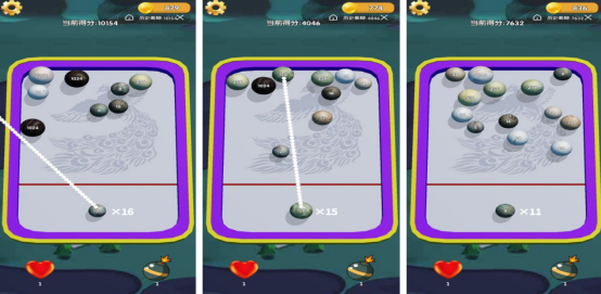 海量关卡组合而成,其中的球杆都特别炫酷,有的是以汽车为主,有的是一个手臂。甚至就连球桌的外观形态都完全不同,可以亲自体验圆形球桌的体验感,屏幕上会看到一颗白色的球球,以及很多带有颜色的球球,通过精准瞄准的方式,就能将其他球球成功射进袋中,获得更高分数,右下角还会看到挪球或者回球的操控按钮。