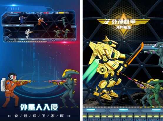通过持枪展开战斗的方式,以摧毁敌方为主要的任务,有超级机甲战士,通过坐上炫酷机甲的方式,给大家带来炫酷全新的体验。虽然大家在玩的时候并不需要连接网络,不过却能享受紧张刺激的战斗,将会面临外星人的入侵,为了保护家园,你需要拿起手中的武器,控制着机甲,机进行战斗,给大家带来极致的驾驶快感。