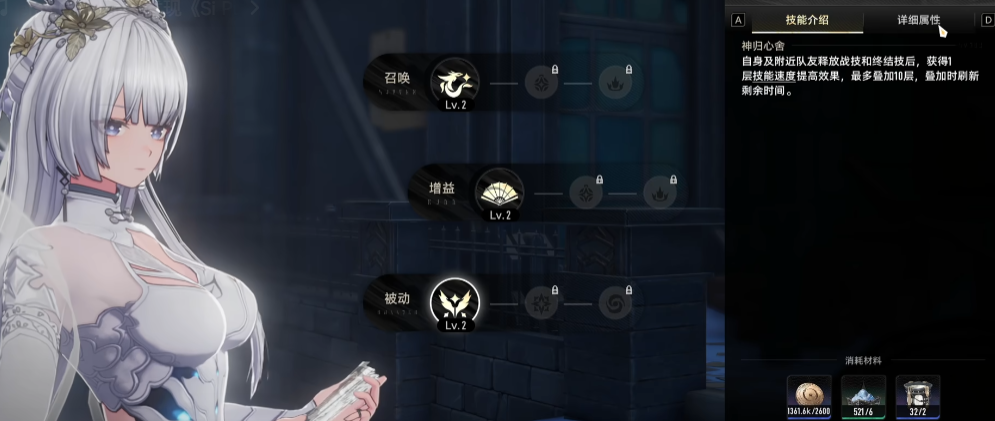 要叠加至第四层需要一定时间积累,且每一层的持续时间需独立刷新,因此合理规划技能释放节奏至关重要。随着角色进阶,玩家还能解锁更多被动能力。例如,在升至二阶时可激活被动华英成秀,依据当前场上存在的云螭数量进一步提升技能威力;当角色达到四阶时,则可解锁筋脉和同被动。