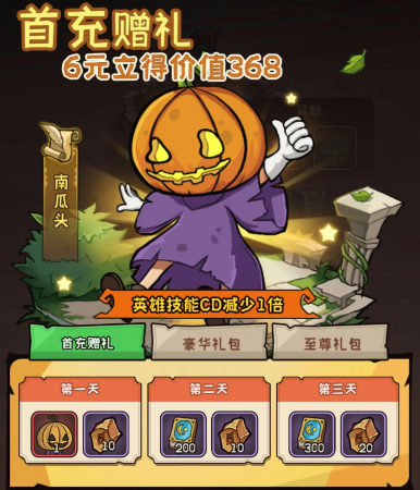 对于刚进入游戏的玩家来说,首充6元是一个极具性价比的选择。完成首次充值后可获得强力伙伴“南瓜头”,该角色在前期拥有顶尖输出能力,能显著提升推图效率,是开荒阶段的理想主力。此外,花费30元购买月卡也值得推荐。虽然当前版本多数材料可通过观看广告获取,但月卡不仅能免除广告等待时间,还能加快体力恢复速度,长期来看具备稳定收益,适合希望减少等待、提升体验的玩家。