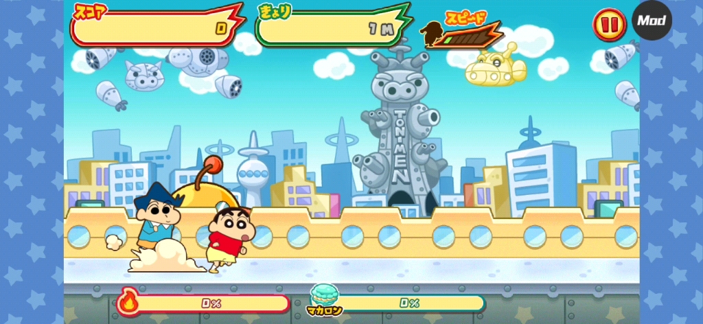本作主角是家喻户晓的调皮男孩蜡笔小新,游戏以快节奏跑酷为主要玩法。玩家需操控小新在多样化的场景中不断前进,灵活躲避障碍物并收集沿途的金币与增益道具。途中他会做出各种标志性动作并搭配幽默台词,细节中充满笑点。整体氛围轻松诙谐,结合流畅的操作手感,让玩家在短时间内释放压力,享受纯粹的乐趣。