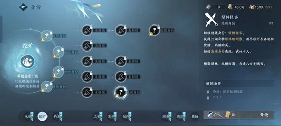 绿林酣眠散的唯一获取途径是解锁隐藏身份“绿林怪客”。玩家需要先打开菜单进入身份页面,在最下方解锁挖矿技能,然后点击右侧的技艺栏,在第二列底部找到双刀交叉图标对应的绿林怪客身份。
