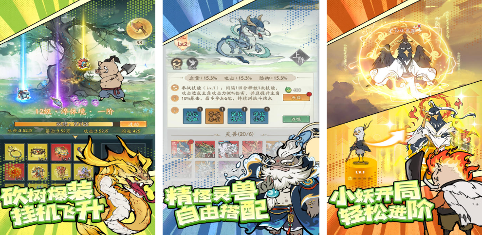 这款修仙养成游戏的爆火,和它精心设计的画风和背景设定息息相关,开发者用“小妖逆袭”的概念,让玩家能更快代入和沉浸在角色之中,用极低的成本增加了玩家和游戏之间的粘性,操作也很简单,小妖通过不断砍树可以解锁宝箱,获得装备,玩家可以用砍树掉落的资源提升战力,而掉落的随机性也会游戏增加了很多趣味,让玩家不断上线看自己有没有获得好装备,一直循环的砍树动作也充满了魔性,很新颖。