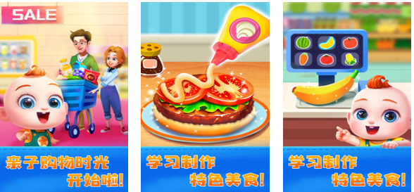 这款类似于过家家的超市互动手游是亲子必玩的APP,展现出的交互性、娱乐氛围都足以吸引孩子的目光,这款儿童向游戏教导孩子如何正确在超市里购买东西,生动卡通的既视感更容易让宝宝沉迷其中,购物与烹饪类的简单模式加持小朋友很容易掌握,游戏带来的各种延展性教育玩法也很有趣。