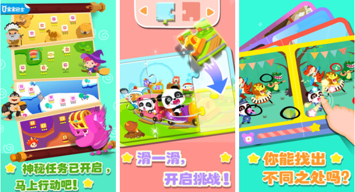爱玩拼图的小朋友们可以进入奇特的拼图世界尽情互动,滑动进行拼图互动的游戏理念小朋友很轻松就能掌握,同时也加入了找不同的模式锻炼着孩子的耐心,神秘任务也是随机出现为小朋友提供了更多惊喜,各种小动物主题的卡通动态图片也增加了观赏性,各位低龄宝宝快进入奇特的拼图世界尽情互动吧。