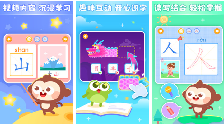 想要认知更多汉字的小宝宝们一定要尝试多多学汉字,本作就是专门让给孩子领悟汉字精髓的免费手游,有着很超前的汉字互动性质、愉快的气氛渲染,超级呆萌的猴子、青蛙动物NPC会成为你的老师,认真跟随NPC学习各种汉字会丰富孩子的汉字储备,游戏玩法各不相同也有着超级扎实的互动性。