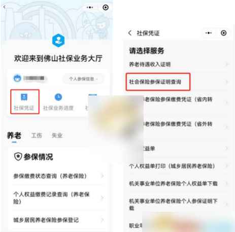 2、点击【社保凭证】后,选择【社会保险参保证明查询】