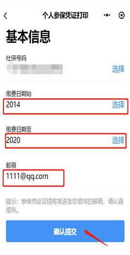 3、录入缴费“开始时间”和“结束时间”,以及e-mail邮箱地址,点击“确认提交”