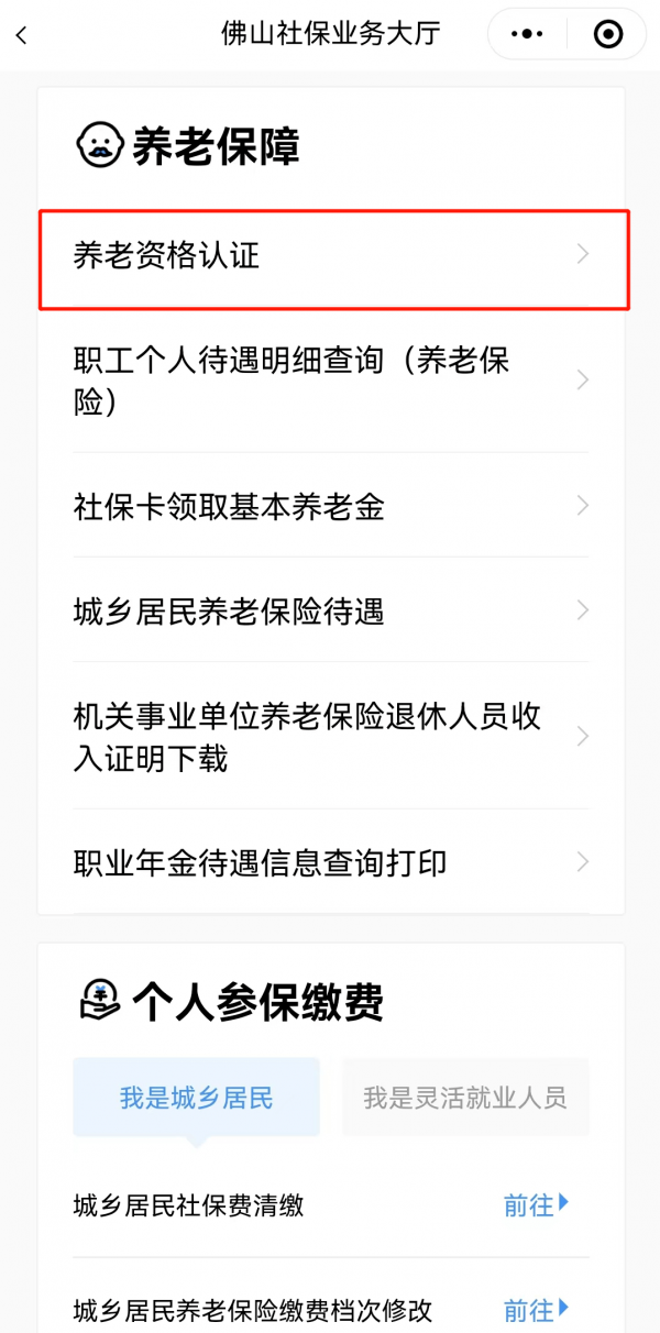 第二步:选择“养老资格认证”。