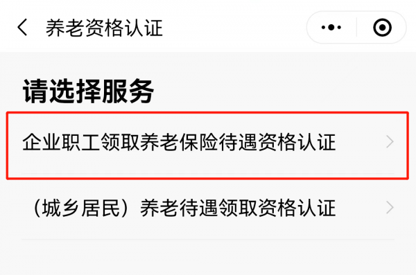 第三步:选择“企业职工领取养老保险待遇资格认证”或“(城乡居民)养老待遇领取资格认证”。
