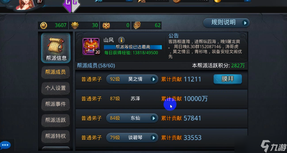 时间:2025-11-25 | 作者: | 阅读:0帮贡是咱们提升实力的重要资源,可以用来兑换珍稀道具、强化装备和提升帮派技能。想要快速刷帮贡,首先得把每天的固定活动都参与一遍,比如火线救援和帮派神龙供奉。火线救援每天有两次机会,通关时剩余的敌人数量和剩余时间越多,获得的帮贡就越多,一般能拿35-50点帮贡。帮派神龙则可以通过捐献装备、经验丹等物品来获得帮贡,贡献品质越高,奖励越丰厚,所以平时攒下来的材料这时候就能派上用场。