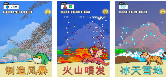《沙盒宇宙》采用竖屏操作方式,是一款强调创造性与操控自由的手绘风像素沙盒游戏。玩家可使用多种自然元素模拟地形、气候甚至灾难现象,扮演“造物主”角色对世界进行重塑。每个可用组件都有独特属性,组合后可产生丰富视觉效果。整体画风辨识度高,操作直观,适合喜欢创意实验类玩法的用户。