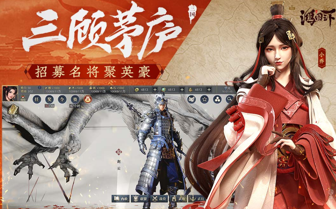 借助虚幻四引擎的强大渲染能力,还原真实三国战场环境,由腾讯推出的顶级策略类手游。游戏地图涵盖超过400万地格,精准复刻历史地形地貌,构建出辽阔且细节丰富的战争舞台。玩家将化身一方诸侯,在乱世中运筹帷幄,依据兵种特性与地理优势制定战术策略。通过谋略布局、联盟协作等方式逐步拓展势力范围,体验大规模国战的震撼场面。