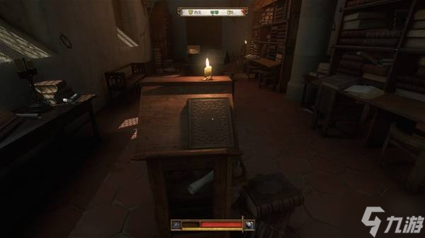 任务推进至【沉默的证人】,自由活动时与撒伽利亚对话,选择“有我能帮忙的地方吗”,之后从德内斯处接取任务【匮日丰食】。接下来去厨房与后勤修士朱利安对话,对话时询问他还有什么办法节约食物吗,他会建议我们去图书馆找找。书的位置如下图所示: