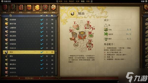 接下来去炼金台炼芳香精油,配方如下图所示:
