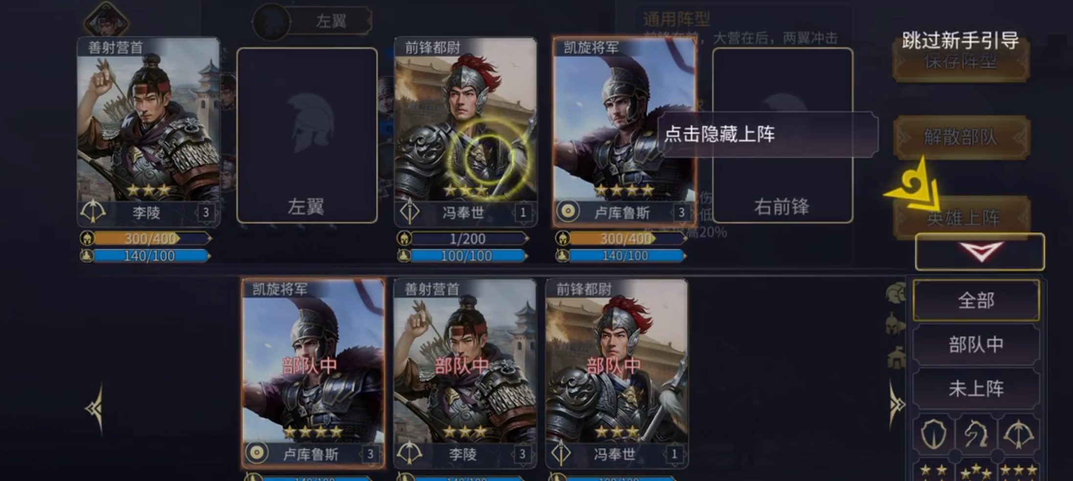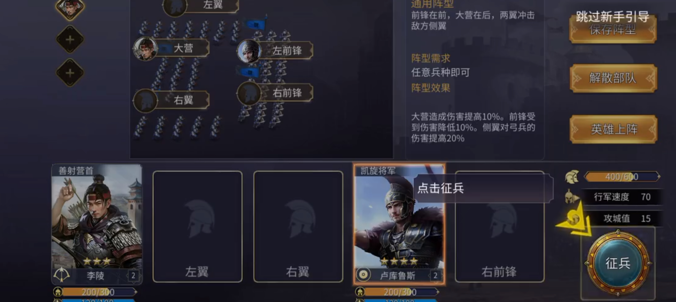 第一个推荐的就是连弩兵,比较适合用于前期开荒,作战能力强。推荐英雄有五星女皇,六星秦始皇和汉高祖。