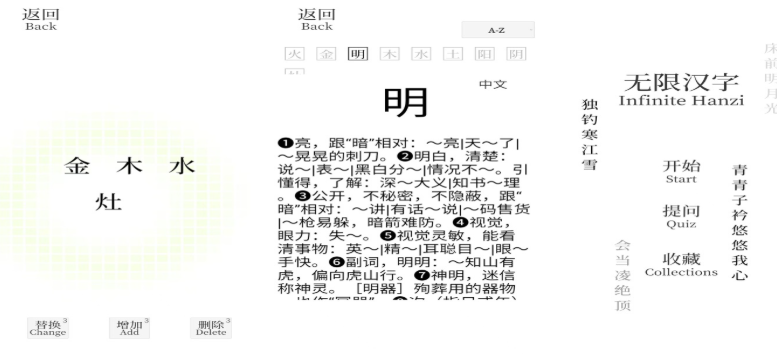 这款应用充分展现了汉字文化的精髓,涵盖大量基础知识,深受青少年喜爱。玩法多样,如移花接木、组合拆解等,绝不重复。关卡设计密集,帮助玩家快速熟悉各类汉字。特别加入AR书写技术,实现人字交互体验。多元化的学习模块赋予玩家持续的新鲜感与探索欲。