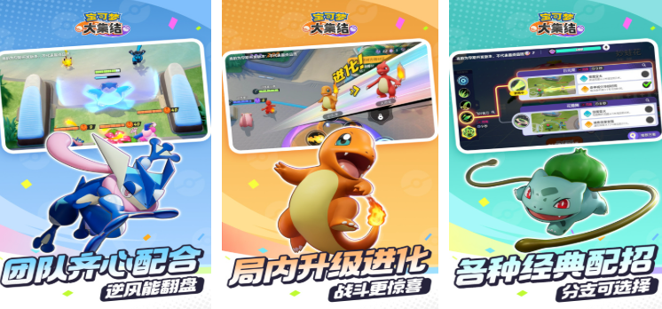 宝可梦大集结主打5v5多人在线战术竞技模式,融合MOBA机制与宝可梦特色属性系统,打造紧张刺激的团队对战环境。地图采用对称结构,划分上、中、下三条主路线,各线路设有多个野怪刷新点和资源区域。击败野怪可获取经验与金币,特定野怪还会掉落能增强团队能力的稀有道具。