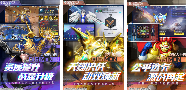 数码宝贝:新世纪专注于数码兽的培育与进化过程,高度还原动画中的经典形象与世界观。玩家通过孵化数码蛋获得初始伙伴,蛋的稀有度直接影响孵化结果——普通蛋通常产出成长期数码兽,而稀有蛋则有机会直接孵化成熟期甚至完全体形态,提升初期战斗力。