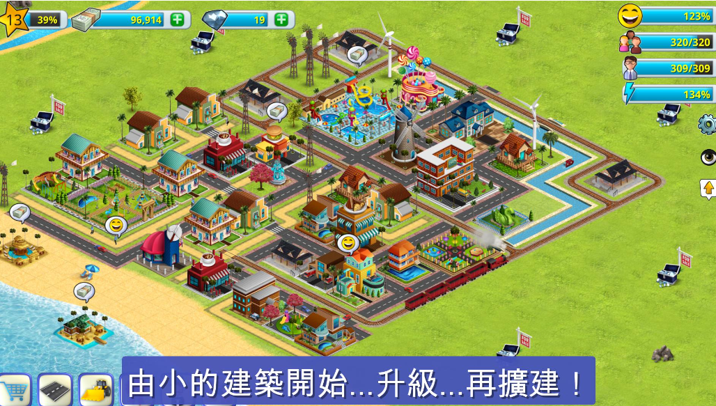该游戏提供了极高的自由度,允许玩家按照个人喜好设计建筑风格,无论是现代摩天大楼还是古典城堡都能轻松实现。每一个建筑细节都经过精心打磨,力求实现美学与实用性的统一。在《我的城市童话世界》中,通过持续收集资源提升城市魅力值,吸引更多访客前来观光,进而推动城市繁荣发展。