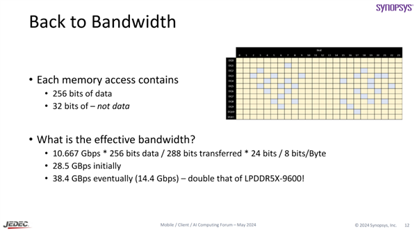 所以 LPDDR6 协议的有效带宽,会在前面理论值的基础上打个 9 折,也就是在 28.5 - 38.4 GB/s 这个范围。但为了整体的数据稳定性,这部分损耗,托尼认为还是值得的。