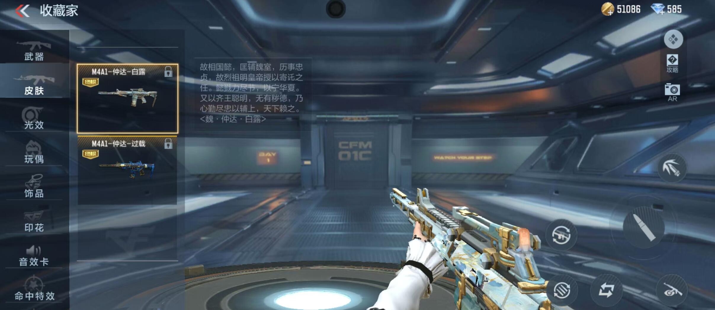 该皮肤融合了国风美学与现代科技元素,不同于普通的换皮处理,仲达系列对枪械模型进行了重构。枪身上雕刻有大雁羽翼纹理,细节层次丰富。在实战过程中,玩家可自由切换五种显示色彩,并同步匹配五首专属背景音乐,音效节奏与鼓点联动,增强游戏代入感。击杀敌人后,目标会化为青烟消散,同时伴随大雁飞舞的动画效果。枪械操作方面也有独特反馈:柯尔特-仲达在切枪时伴有红焰环绕枪体;M4A1-仲达在换弹动作中则会出现大雁幻影钻入枪身的特效。