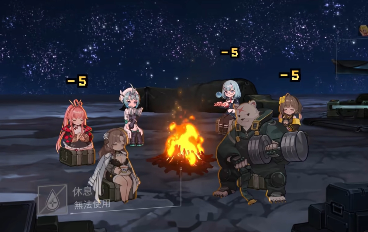 本作采用类 Rogue 的塔式推进结构,玩家在每一层中需从多个随机生成的路径中做出选择,逐步深入挑战更强大的敌人。地图上的节点包含战斗格、事件格以及安全区营地格等不同类型。其中,事件格会触发随机剧情,提供诸如获取新卡牌、减少队伍压力值或获得特殊增益等选项;而营地格则可用于恢复角色状态,并设有商店系统,允许玩家使用局内货币购买卡牌补给或功能性道具,为后续战斗做好准备。