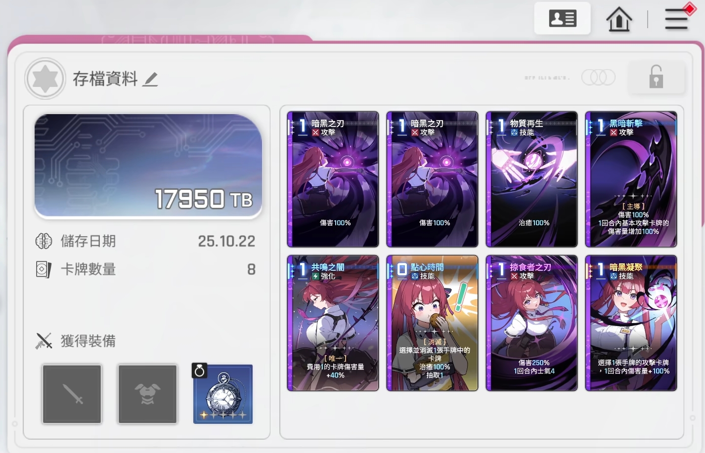 此外,《卡厄思梦境》引入了一套持久化的角色成长体系。在每一次爬塔过程中所获得的卡牌和装备,可通过存档点保存下来,并在后续游戏中继承使用。这意味着玩家可以通过反复挑战来优化角色配置,不断提升其实力上限。同时,支持覆盖已有存档的功能,使得角色养成更具方向性和可控性,增强了长线体验的成就感。