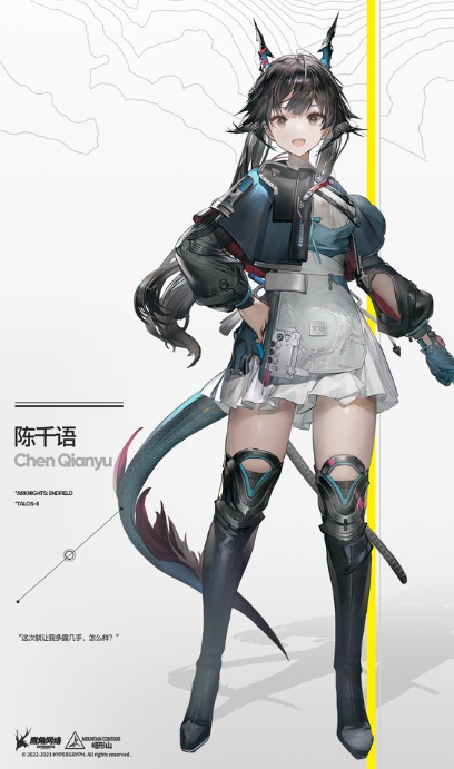 第2个给大家介绍的就是陈千语,陈千语这个角色其实很多玩家都是在训练之后才会使用她,陈千语在自身的近战爆发上面有不错的数值可以利用起来,使用技能效果上面可以带来瞬间闪现的一个灵活性动作,而且在目标身边进行输出的话,基础可以带来200%的物理类型伤害,那么在首次击中敌人的时候,她附带的一些破刃效果可以快速施加到敌人身上之后达成的一个影响就是击飞类型的能力,在敌人被击飞之后,可以在后续的行动当中受到一定的限制,所以这类作战方式的话,根据她的能力来看,放在前线进行突击绝对是非常适合的。