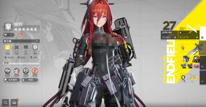 接下来为大家推荐的是余烬这个角色,余烬目前在游戏当中,如果想要用到各种大招效果的话,这里的热熔状态就一定要施加给敌人,因为余烬基本上技能效果都是可以带来热熔属性上面的伤害,技能效果上面基本是对扇形区域当中的目标都可以造成伤害,而且伤害并不是一次性的,后期的持续影响是能够达成多回合进行生效的,在使用大招使用时是根据护盾的时间来确定,这里只要她的护盾时间结束了之后,那么大招就会为她带来生命恢复的一个治疗效果,虽然是给她自身带来治疗,但是这里根据这样的能力,可以让她在持久战里面达到全方位的表现,不管是输出可以利用主动技能,还是恢复利用大招,都可以让她得到足够出色的表现。