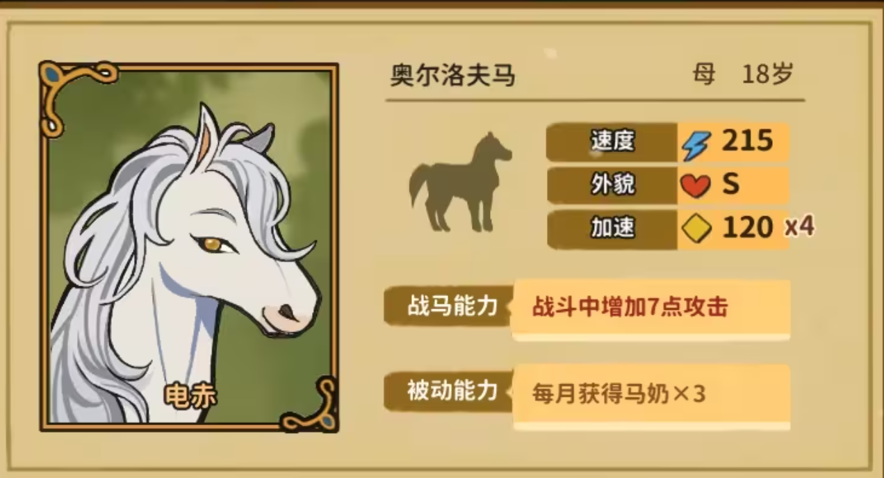 玩家需要先去野马湖区域捕捉赛马,必须已经解锁马厩功能。不同等级的马有不同的用途,低等级的马用来做挤奶等日常活,高级的才有资格参加比赛。初始阶段应该选择速度快的马匹作为竞赛主力,购买武器店的刷子来提高马匹属性。对于第一档比赛,保证初始速度大于120就行,第二档比赛为了稳妥,建议刷到220以上速度,但190以上速度也能达到基本要求。