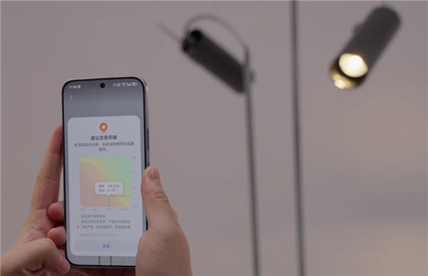 说白了,它能扫描你周围的灯光,不管是办公室的荧光灯、家里的 LED 灯,只要有频闪问题它都能检测出来,也就是说,手机不光管自己护眼,连你家的灯护不护眼它都要管。。。